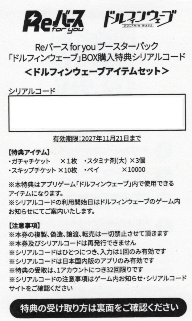 【BOX購入特典】シリアルコード ドルフィンウェーブアイテムセット[Re_DW/001B]