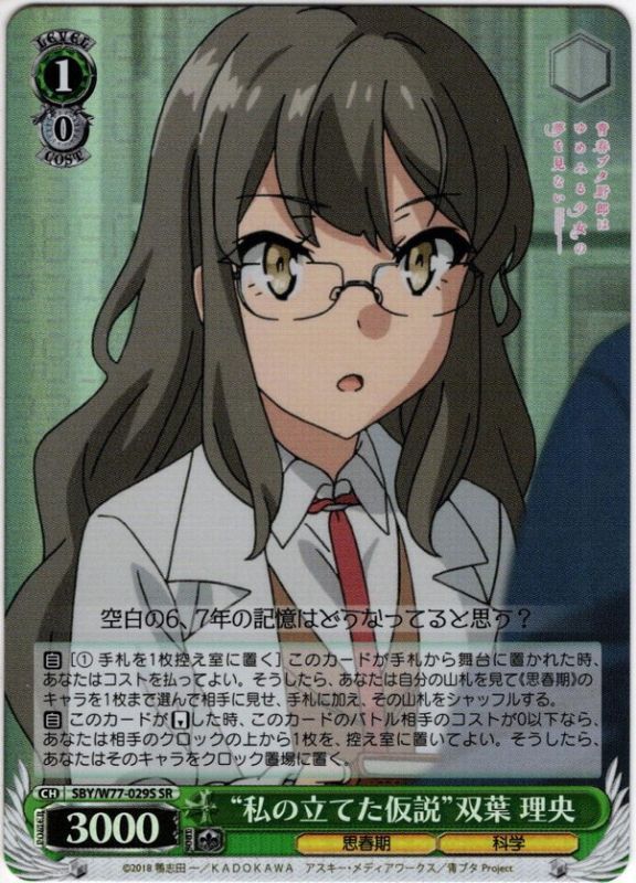 【SR仕様】“私の立てた仮説”双葉 理央[WS_SBY/W77-029S] 【SR仕様】“私の立てた仮説”双葉 理央[WS_SBY/W77-029S] 販売価格: 280円(税込) 在庫数 2点 数量: 1 2 返品特約に関する重要事項 お問い合わせ