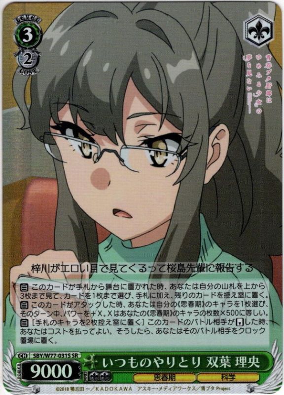 【SR仕様】いつものやりとり 双葉 理央[WS_SBY/W77-031S] 【SR仕様】いつものやりとり 双葉 理央[WS_SBY/W77-031S] 販売価格: 180円(税込) 在庫数 1点 数量: 1 返品特約に関する重要事項 お問い合わせ